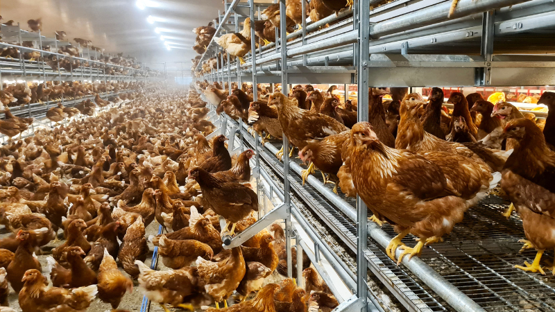 ファッコ社の多様なケージフリーシステムから1点(Evo Lシステム)及び制御システムなど展示します。