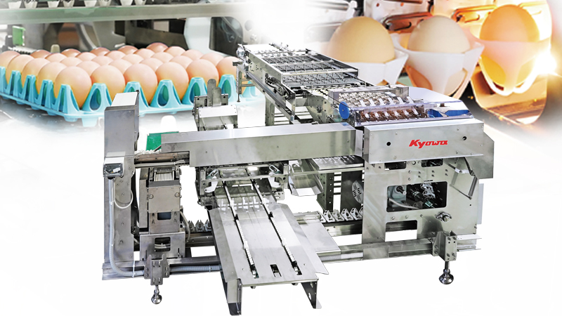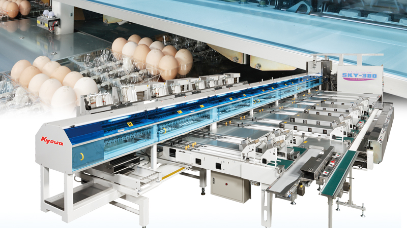 処理能力を高め不良卵の排出を可能にした次世代型のファームパッカFP-730に、コンパクトなメグソン社製のパレタイジングロボットMeggbot TP100(メッグボット)を組み合わせた農場向けのシステムをはじめ、エッグカーゴシステムに対応するジーパックデパレタイザECS、モウルドトレイを容器に収容するモウルドトレイケーサ、ラウンド型では世界最高峰の割卵性能と優れた衛生機構を合わせ持つ高速割卵機QK-800など多数の新製品を取り揃えて展示します。