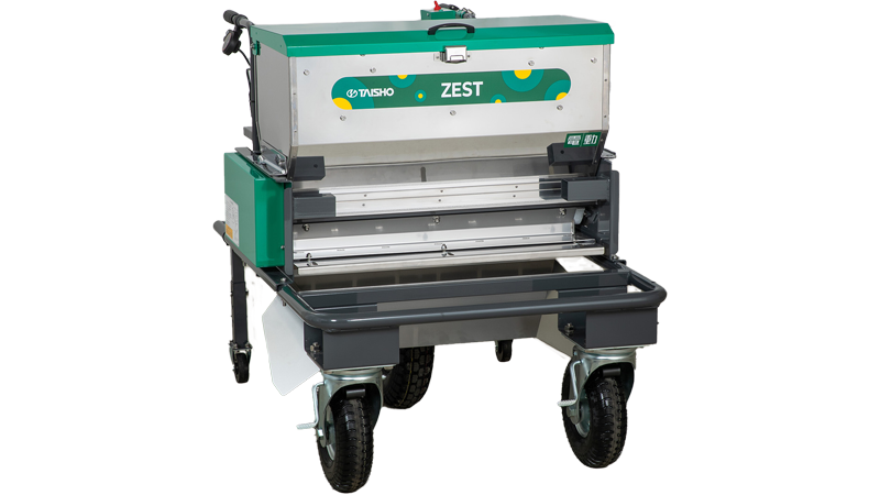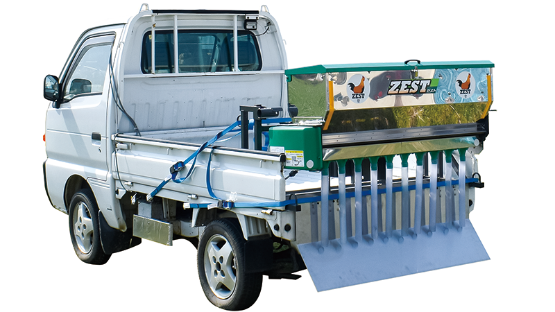 家畜の伝染性疾病の発生を予防するため石灰散布機の出展。